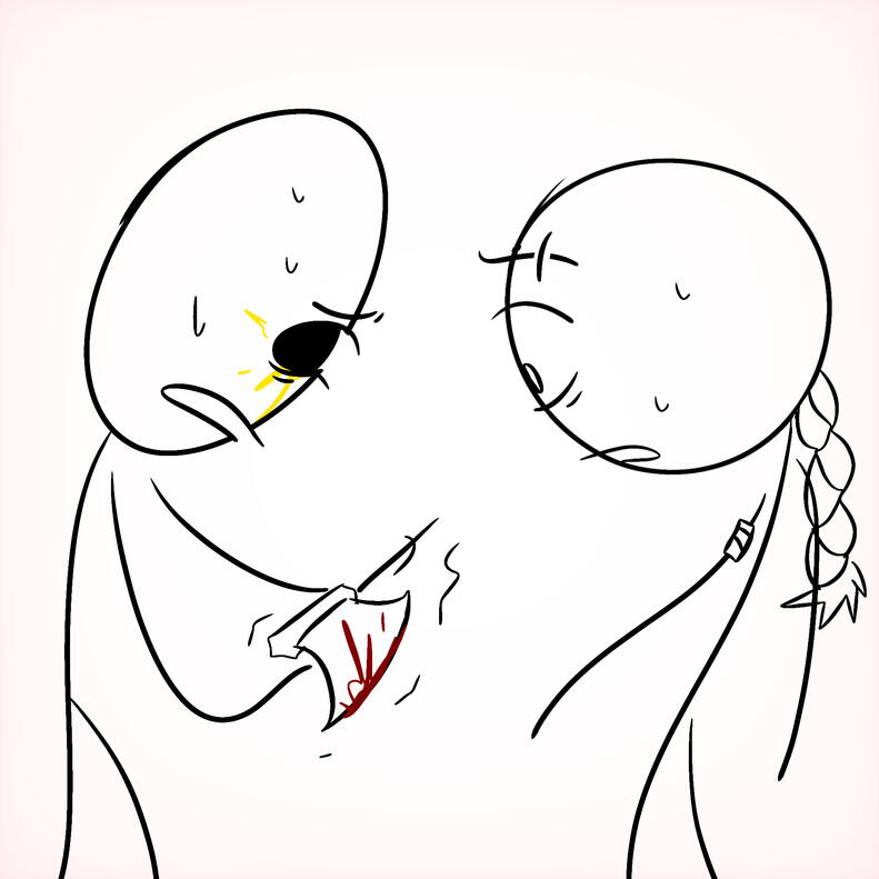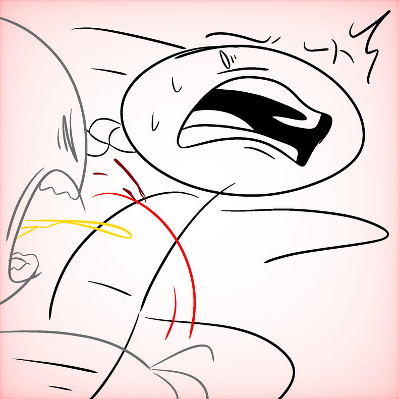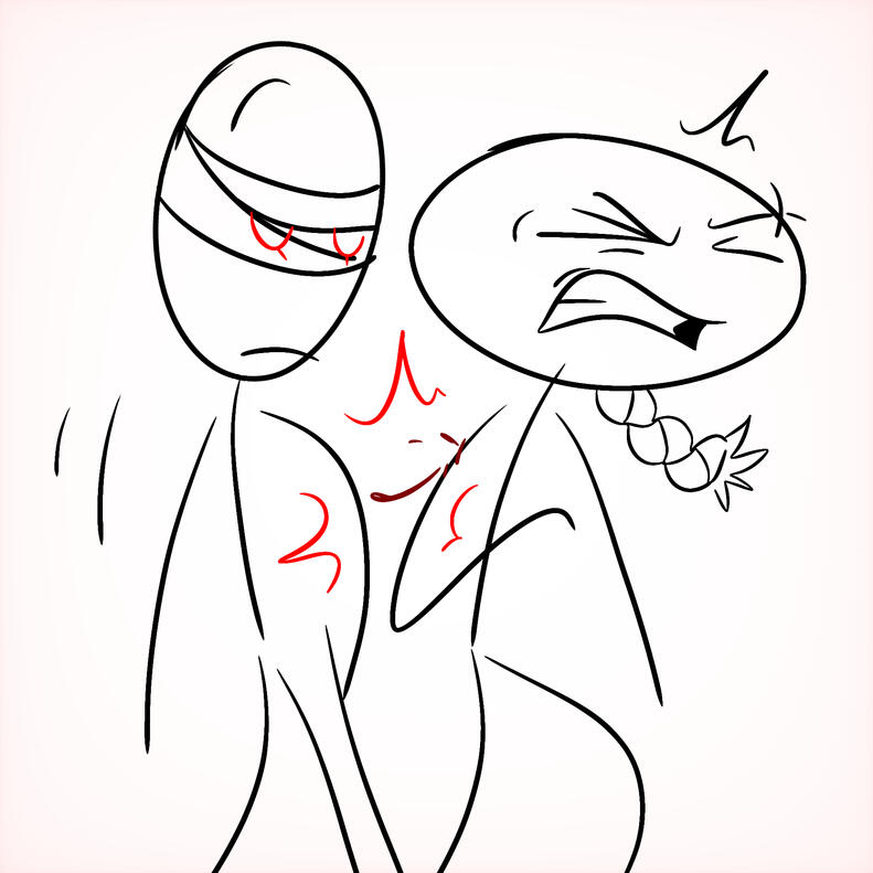 while walking, your companion bumps into your bleeding arm, making you wince.