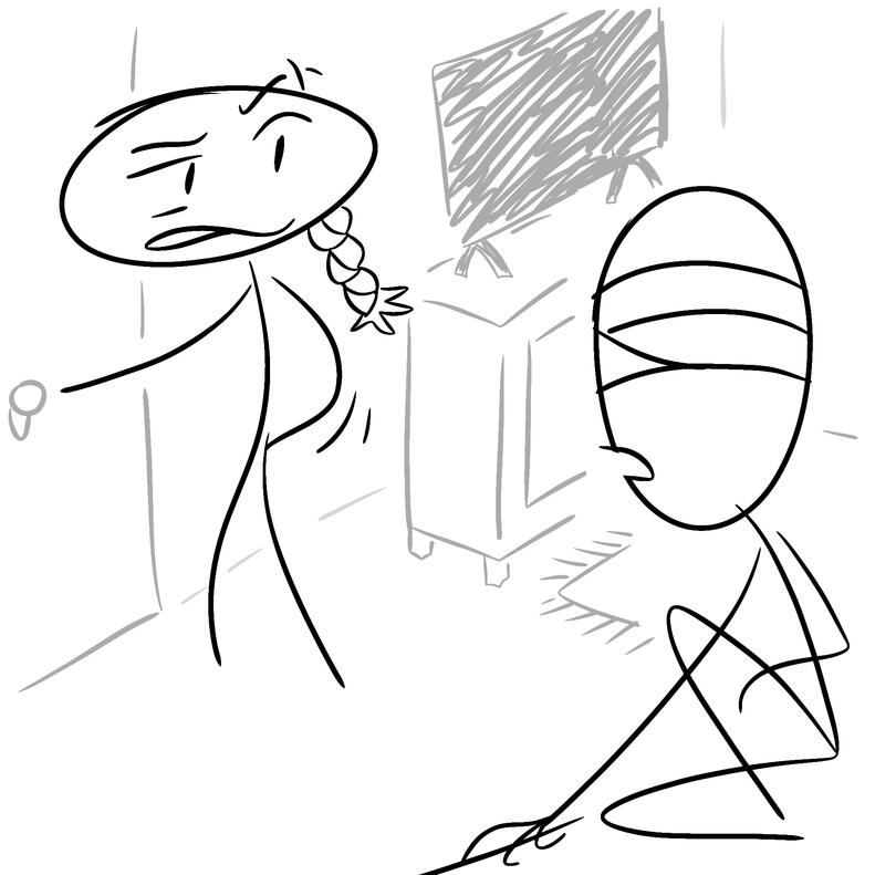 they comment that you're hurt, but you deny it. insisting your wound be covered, they remove their bandages and begin wrapping you.their lack of eyes causes them to work slowly. feeling vulnerable out in the open, you look around frantically.
